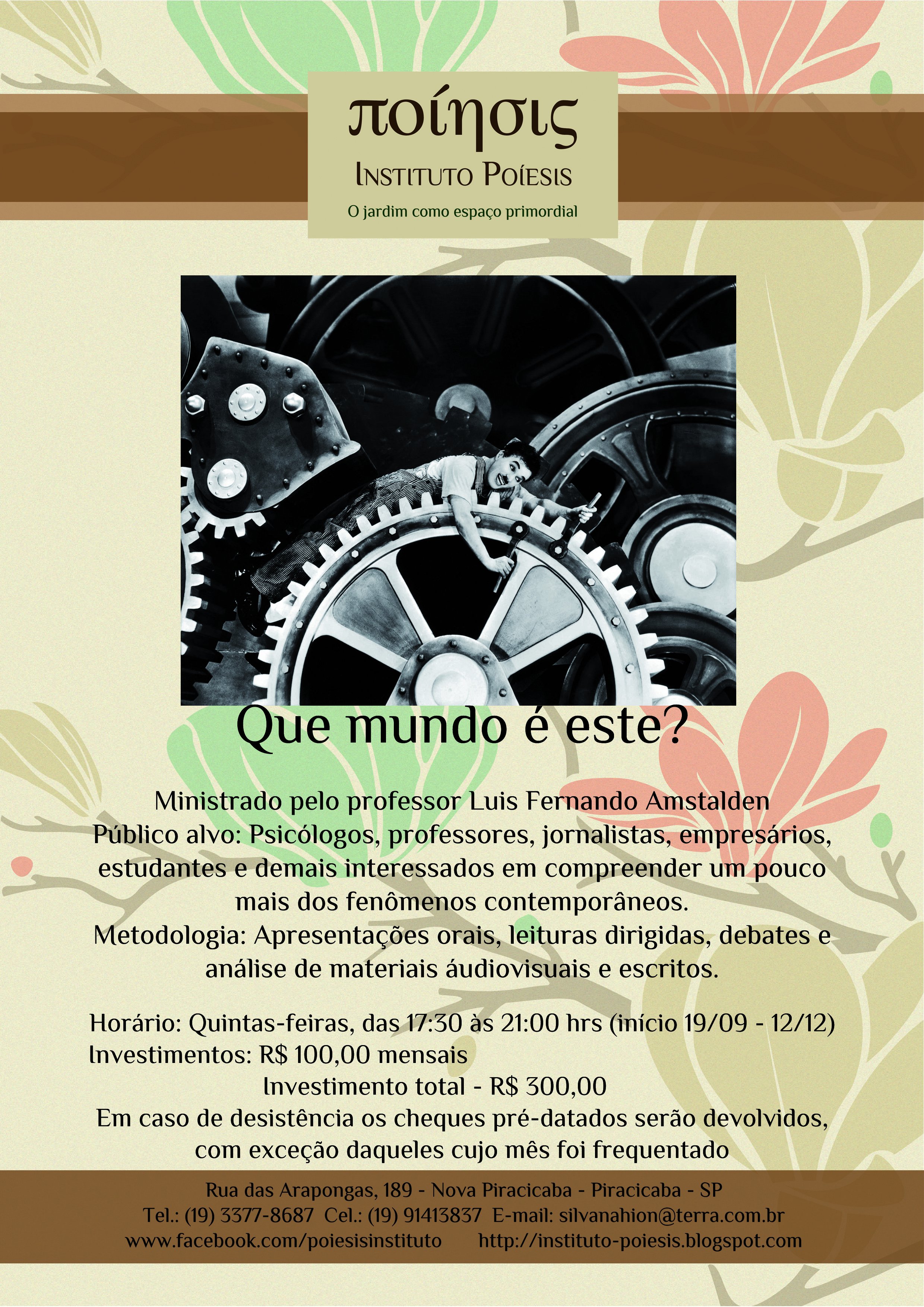 Mais informações nos telefones e email do Instituto Poíesis ou pelo email lfamst@hotmail.com
